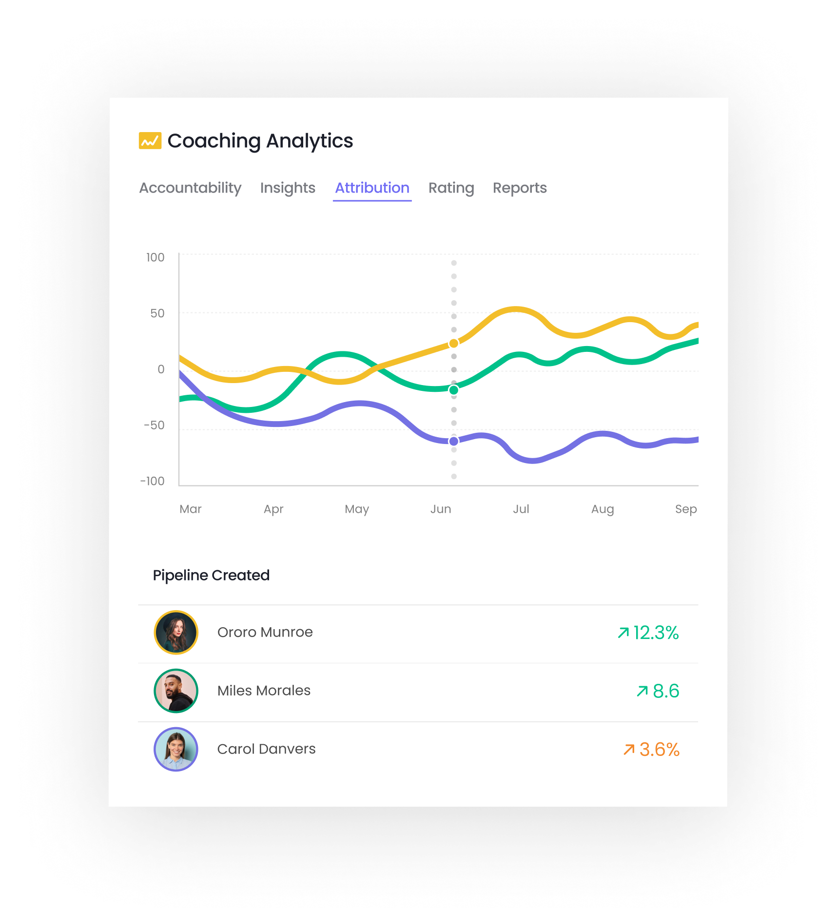 Coaching Orchestration™ ensures consistency across the GTM team. Use automated Coaching Software and Cadences to run high-impact 1:1s and centralize documentation.